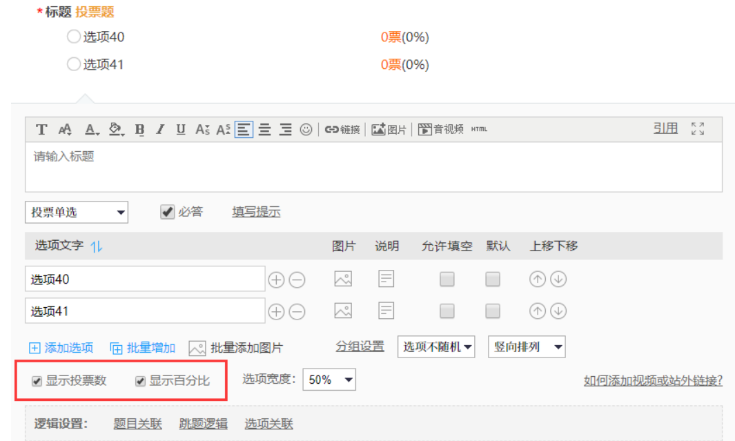 在选项设置中取消勾选显示投票数和显示百分比即可。