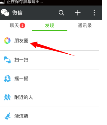 第二步:登录后,在微信首页点击【发现】,在点击【朋友圈】,如下图所示: