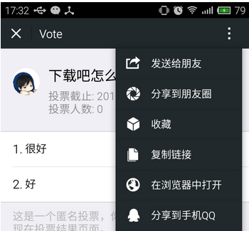 不管微信公众号文章里面有没有添加投票的功能,都可以用下面的几个步骤将文章的链接复制出来: