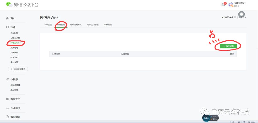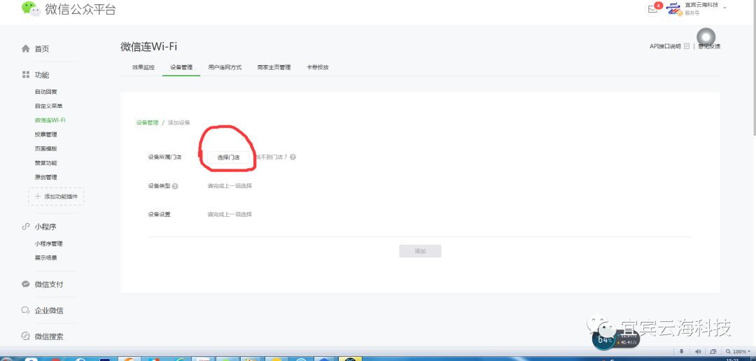 点击添加设备,再选择门店,选则你需要使用的WI-FI门店