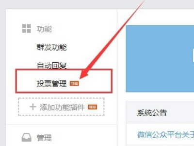2、进入微信公众平台以后,点击主页面的左侧,选择“投票管理”,进入新建投票的页面。