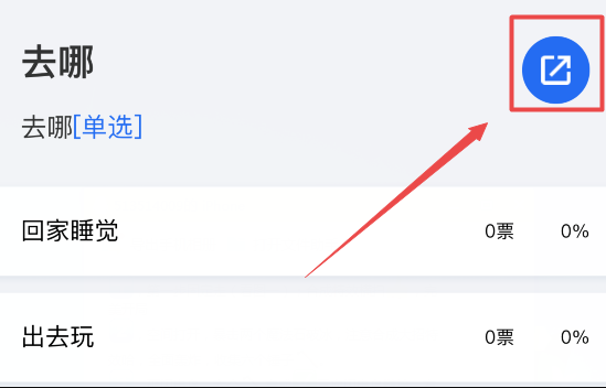 5、进入下一页面后可以看到新建的投票页面,右上角有个转发按钮,点击,