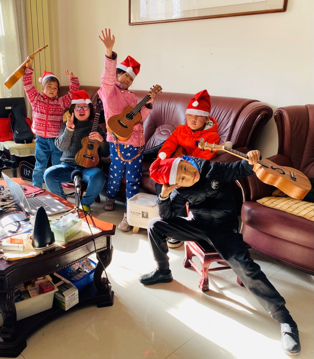 这一次小马也加入进来,所以四位小朋友组成了神气的尤克里里小虎队,虎年大吉!
