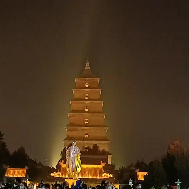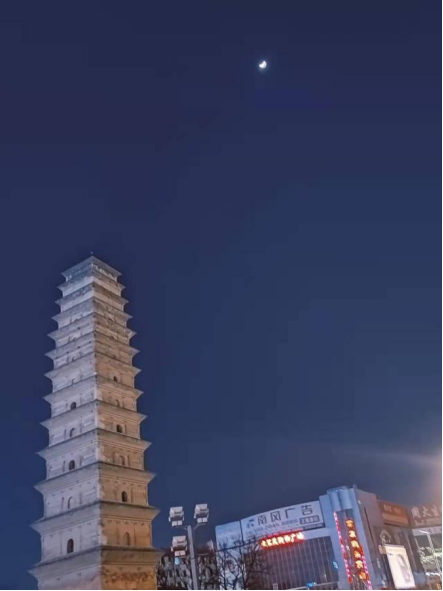 饭后消食,在蒲城县内闲逛,紫荆公园和傍晚余晖相伴,矗立在广场的北寺宋塔与夜色合影。