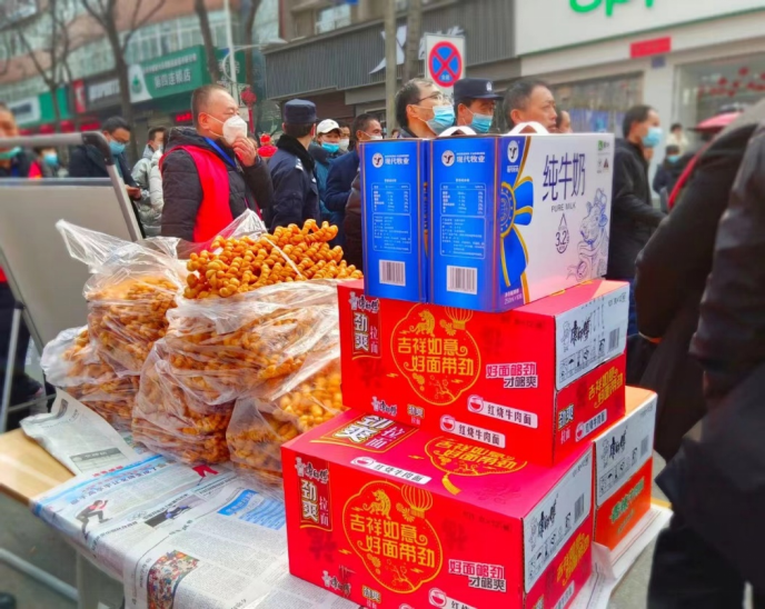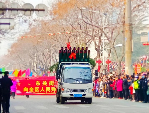 而整个社火队伍的最后面,走的便是礼车,由于社火多为各个政府村镇自发举行,为大家带来热闹,所以社火队伍所经过的各个单位,便都会在自家门口摆上桌子,放上为社火队伍所准备的礼物,会有专人将其放上车,俗称“拉礼”,而这些礼品多数都是麻花、牛奶、桃酥等,都不是什么珍贵的东西,但却是各个单位人民的一份心意,俗话说的话,礼轻人意重,代表的不过是大家简简单单希望幸福美满的愿望,图个平安罢了。