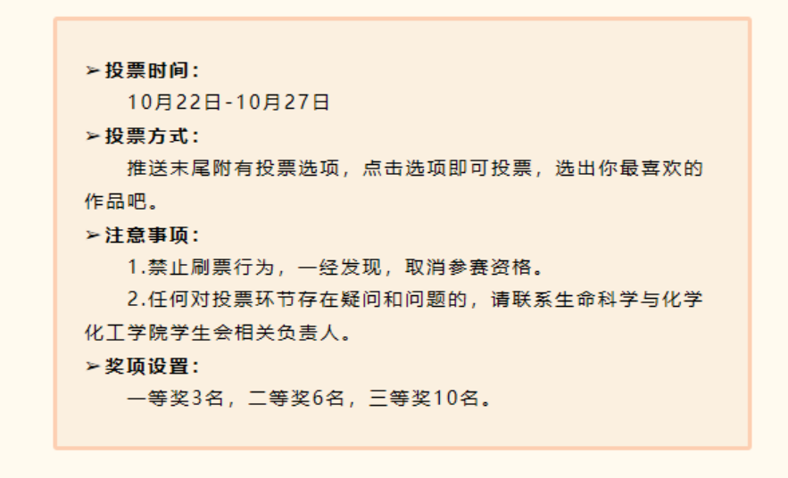 2.任何对投票环节存在疑问和问题的,请联系生命科学与化学化工学院学生会相关负责人。