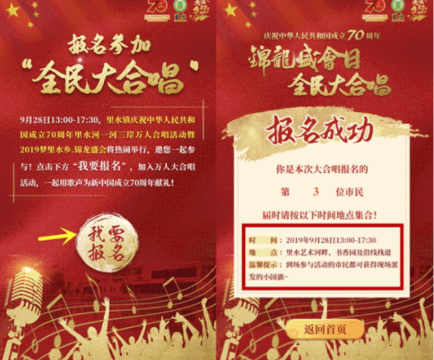 2、进入首页后,点击“我要报名”,加入万人大合唱活动,当日到场参与就可以啦~