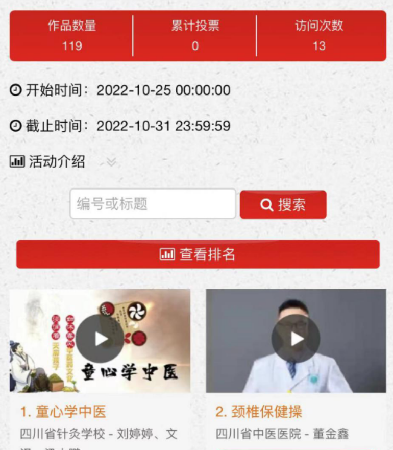 经过初步筛选,本次中医药文化抖音短视频大赛共有119件作品进入网络评选环节。