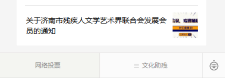进入济南市残文联的微信公众号(JNCWLH),点击下方菜单“网络投票”