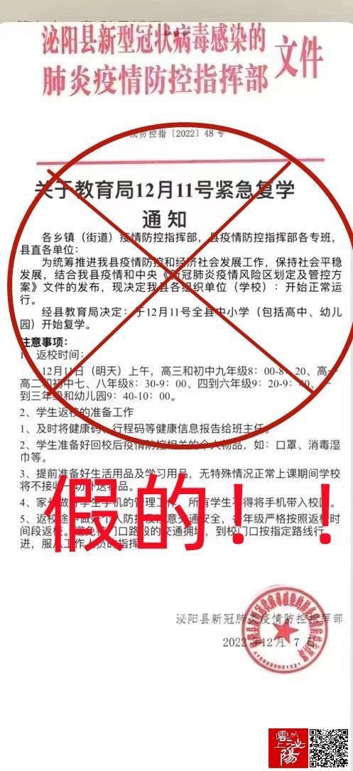 近日,关于“泌阳教育局12月11日紧急复学通知”的消息在网上热传,引发了学生和家长们的极大关注。对此,泌阳县教育局表示,网传“泌阳县教育局12月11日紧急复学通知”的消息为不实信息,泌阳县教育局从未就此下发任何官方通知!关于学生复学一事,请广大人民群众以官方信息为准,不造谣、不信谣、不传谣!