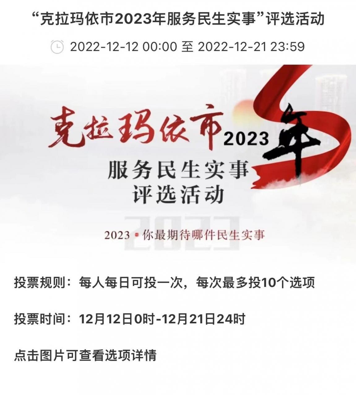 “克拉玛依市2023年服务民生实事”评选活动再次启动。