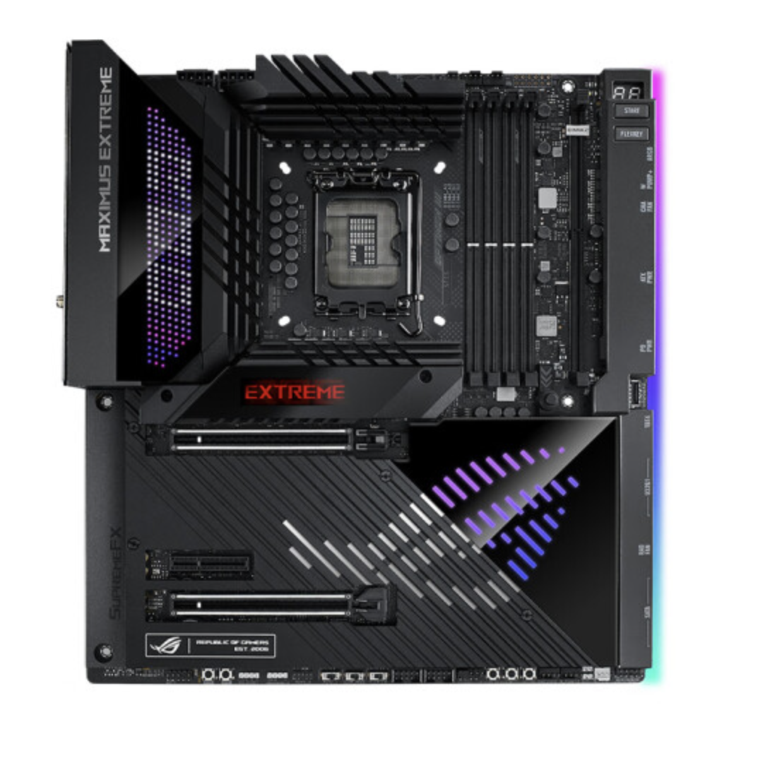 ROG MAXIMUS Z790 EXTREME是ROG Z790平台中当之无愧的旗舰主板,24+1供电模组轻松驾驭i9-13900K处理器,7800MT/s的超频内存速度和128GB的内存支持也提高了主板的综合实力。再配合上5个M.2接口和两个PCIe 5.0×16显卡插槽,即使再强的配置也能轻松拿下。