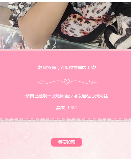 活动规则:活动期间每天每个微信账号可投3张票,禁止网络刷票、水军群求助(系统自动监测刷票情况,一经发现立即取消资格!)