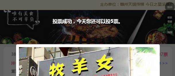 温馨提示:一旦有刷票行为,平台会自动检测,自动清除所刷票数,真实投票会保留!刷票事小,减票后影响名誉事大!请各位商家自觉维护良好的宣传环境。