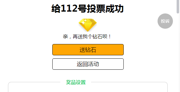 2,点击搜索选手的投票按钮,进行投票,提示投票成功