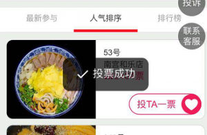 1,点击所选选手的投票点赞按钮,进行投票,提示投票成功。