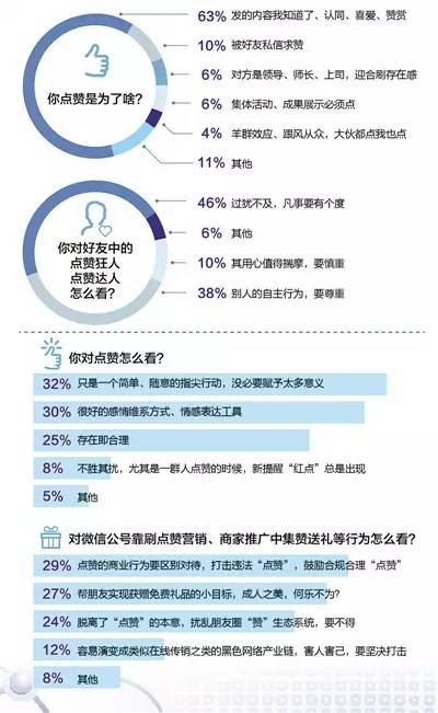 南京某事业单位员工宋玲说:“有一次,我在会议场合添加了一名微信‘好友’,散会后再没联系过。没想到,上个月他突然要我给他转发的一条促销信息点赞,说是集赞满额后商家送洗衣粉,我答应了;最近他又要我给某健身房的推广文章点赞,说集满100个赞可半价优惠,那次点赞之后,我就把他拉黑了。说实话,我真怕他过两天又来找我要赞。”