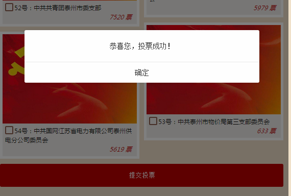 3.然后点击投票按钮,拉到下方进行投票,然后会提示投票成功