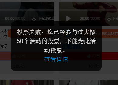 典型的磐石投票活动,也是对账号进行限制了,如果账号经常投此类活动的话就会提示。