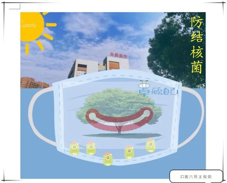 看了很多同学的作品,我感觉到了惊艳,还有迸发的创意碰撞。结合这次是结核的教育知识活动,能让更多的人参与进来,让人们脸上的口罩不再单调,有了更丰富多彩的图案。结核预防,从你我做起。