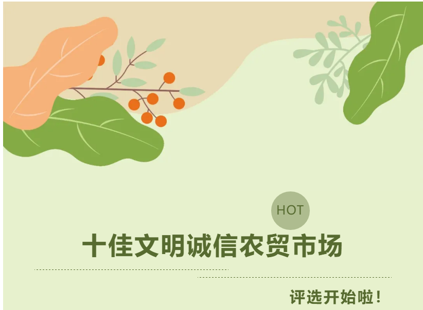 为深入推进市区农贸市场长效管理工作,督促引导市场主办方诚信经营,规范提升日常管理水平,积极倡导“诚实守信、文明经营”新风尚,努力打造“安全放心、干净整洁、价格公道、服务优质”的市场环境,市市场监管局、市文明办、市商务局联合启动了2020年度泰州市市区“十佳文明诚信农贸市场”评选活动。