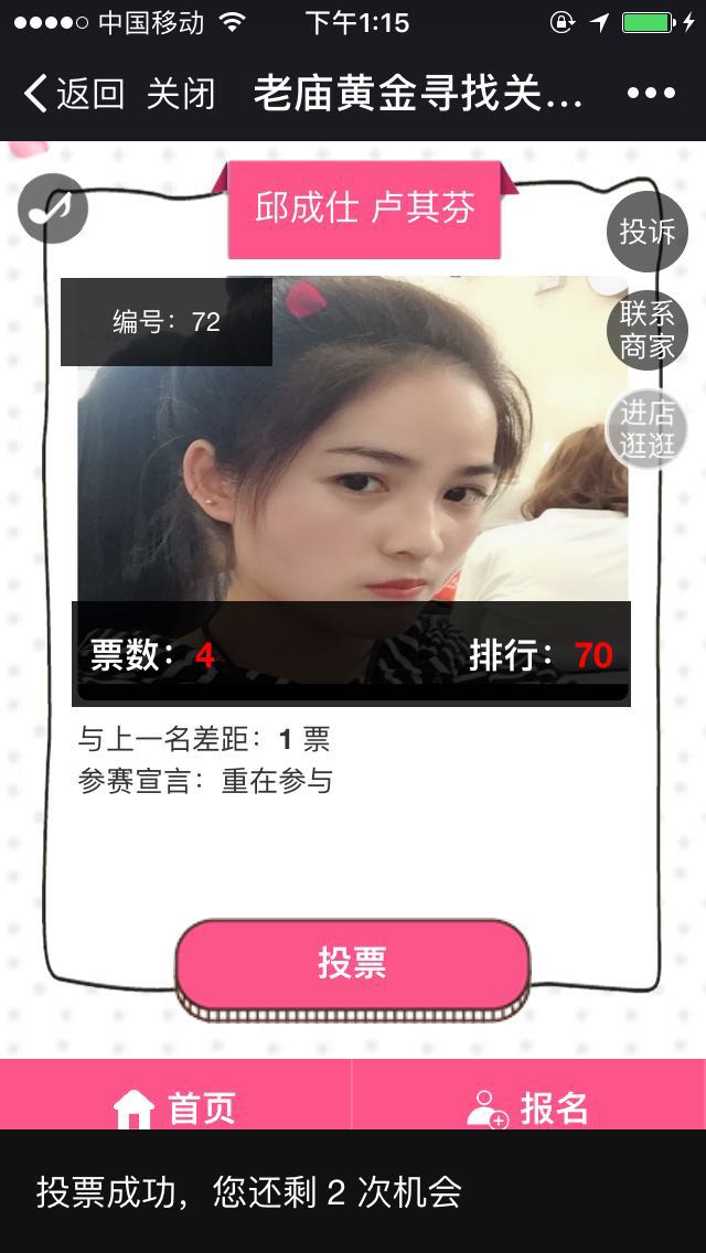2,找到该投票选手的链接,进行投票,点击投票按钮