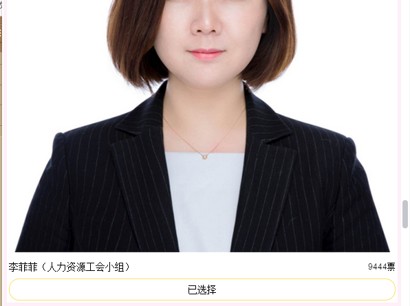 2、识大体、顾大局、积极发扬“四自”和“四有”精神、具备良好的职业道德和工作作风。 3、工作中勇于创新、务实肯干,有突出贡献和成绩,在本岗位具有较强的带头示范作用,并得到客户和周围同事的认可。 4、从事本岗位工作八年以上并连续三年获得公司“优秀员工”称号的女职工优先推荐。公司中层以上管理干部不参与本次评比活动。 1.微信点赞流程 1.首先输入选手的编号和名称 2.找到输入编号的选手,然后点已选择,进行投票 3.点击投票,就可以了。