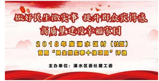 2018年,我区开发区、各镇街共排定1157个民生微实事项目,总投资1.09亿元,涵盖道路建设、农田水利、社区服务等多个方面,致力于改善城乡村(社区)基础设施水平,推动溧水更加美好、宜居,人民生活更加幸福。经过努力,截至10月底,已按序时进度完成项目980个。为总结推广全区民生微实事工作的有益经验,充分发挥优秀项目的示范、激励作用,推动民生微实事工作在全区范围内取得更好成效, 现开展2018年度溧水区村(社区)首届“民生微实事十佳项目”推选活动。我的家园我做主!居民朋友们,究竟选择哪个项目能入围最后的十佳项目评选,由您说了算!赶快为你喜欢、认可的方案投票吧!