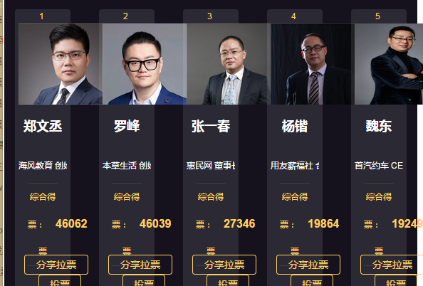 2.点击企业类找到该选手进行投票