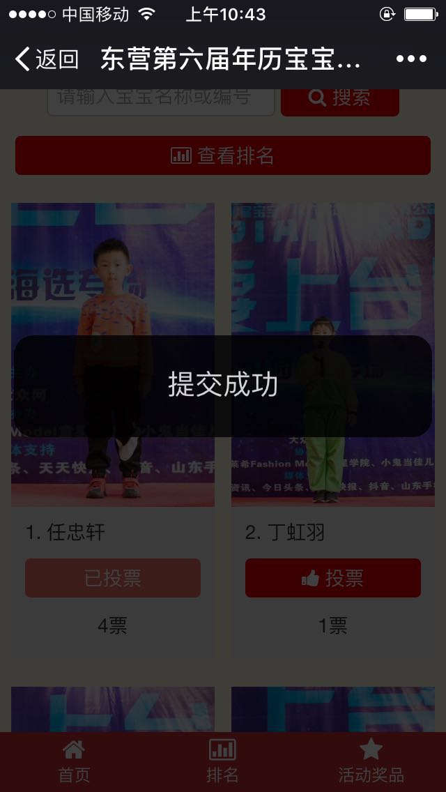 5,点击搜索的选手,投票成功