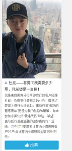 投票规则:每个微信每天能投5票,每天可为同一选手投1票