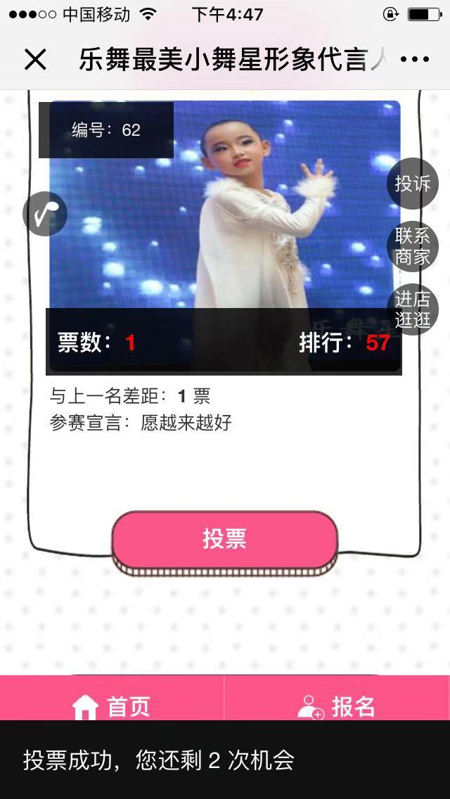 3.点击投票按钮,提示投票成功,可以连投3票一选手
