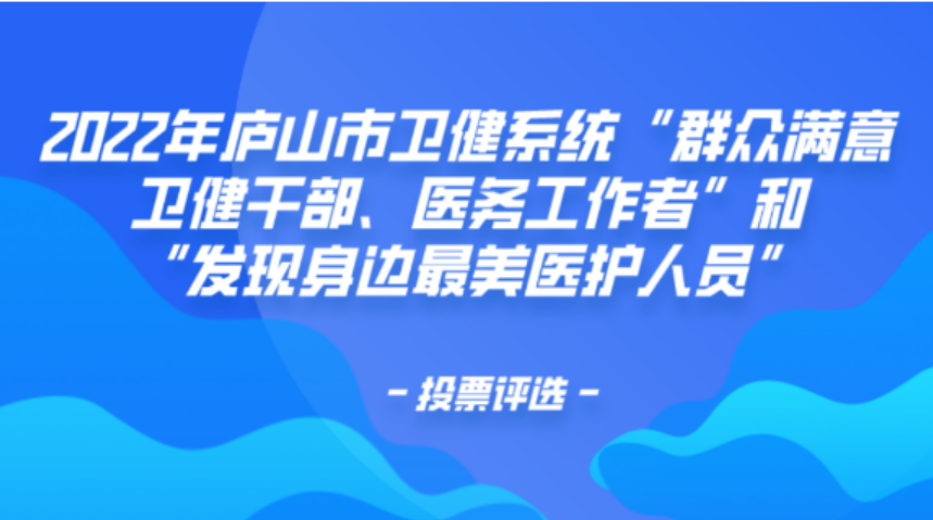 【请为我们投票】2022年庐山市卫健系统“群众满意卫健干部、医务工作者”和“发现身边最美医护人员”投票评选 为深入践行社会主义核心价值观,进一步弘扬伟大抗疫精神和崇高职业精神,切实推动“勤廉江西”建设在全市卫生健康系统落地落实,深入挖...