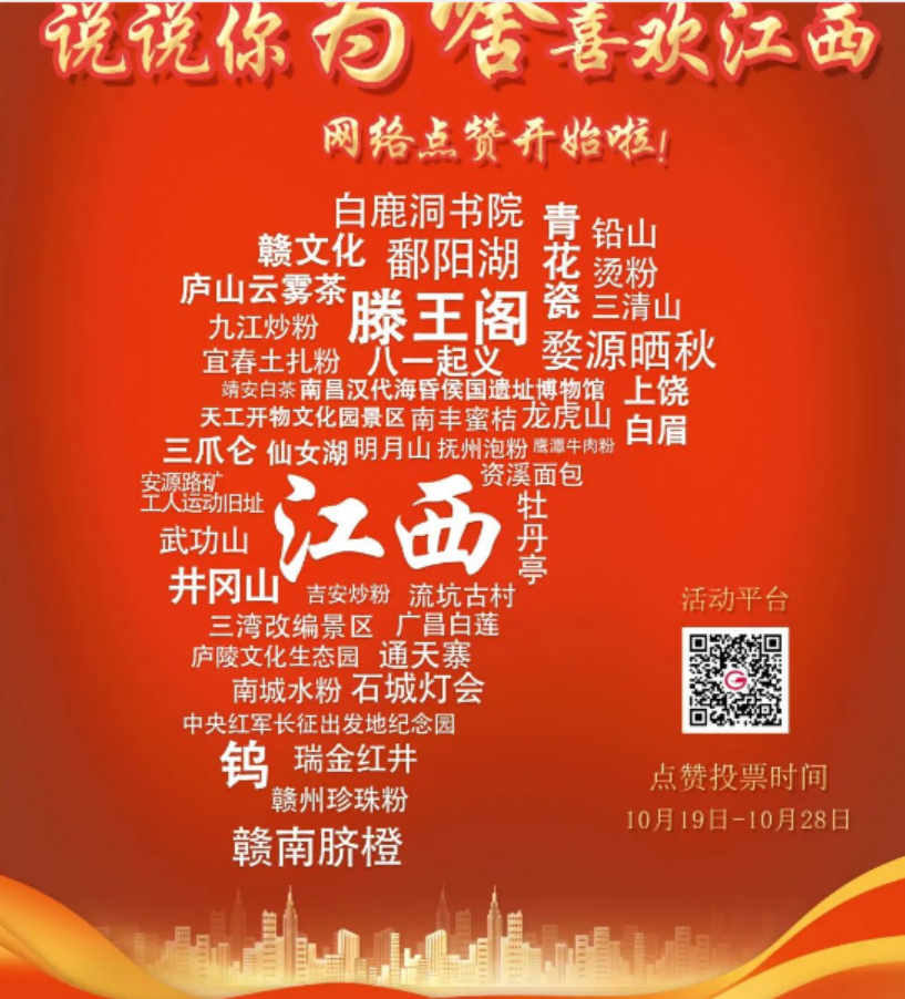 莎士比亚有言:“一千个读者眼中有一千个哈姆雷特。”同理,你为什么喜欢江西?不管是生长于斯的本地人,还是后来结缘于这片红土圣地的外来者,江西都有着各种值得喜欢的特质。由本报特别策划推出的“说说你为啥喜欢江西”活动已于10月15日结束征稿,本次活动反响...